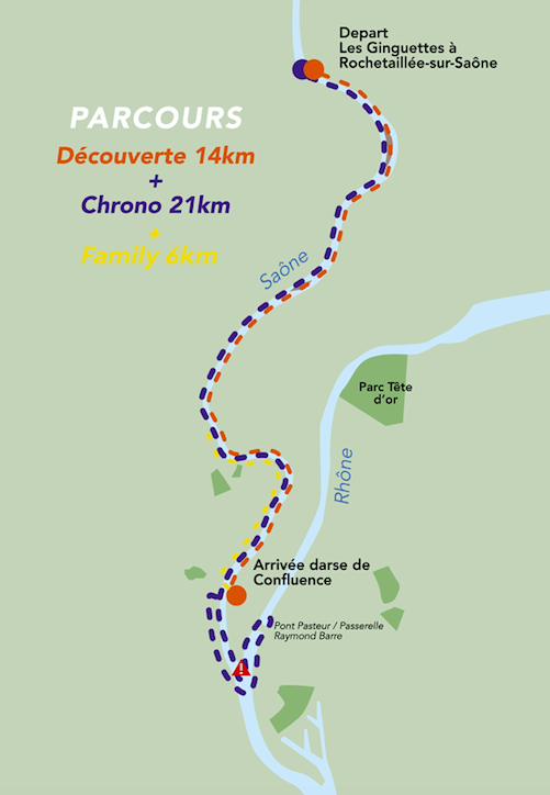 Au fil de la Saône, les participants vont ainsi pouvoir admirer les Berges de Saône depuis Rochetaillée-sur-Saône, et ainsi faire une descente inoubliable depuis la campagne lyonnaise jusqu’au cœur de la ville en kayak, canoë ou stand up paddle…Après un départ en masse dans l’esprit des grands marathons, les 1500 à 2000 participants attendus cette année s’installeront à leur rythme et glisseront vers le pont de Fontaines, puis l’Ile Roy, le Pont de Collonges, l’ile Barbe, le quartier de l’Industrie, puis le centre-ville jusqu’à Confluences.
